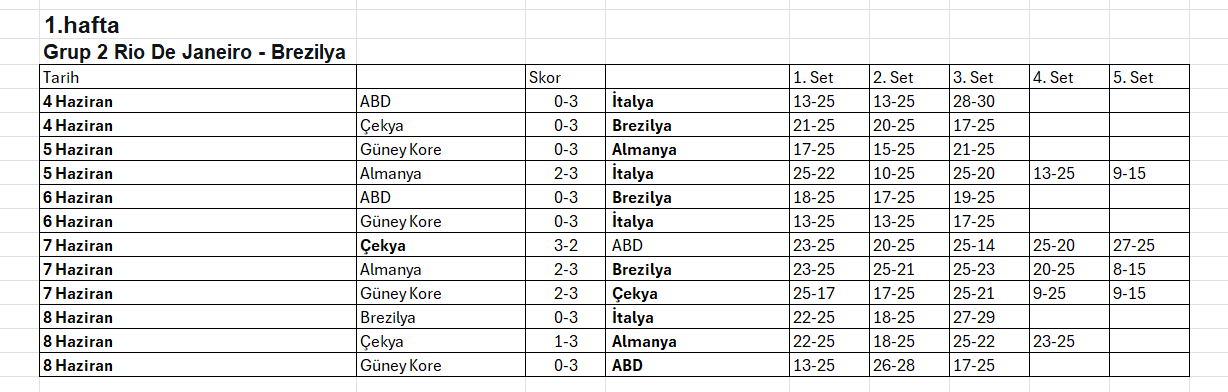 Oynanan maçlarda alınan sonuçlar şöyle: