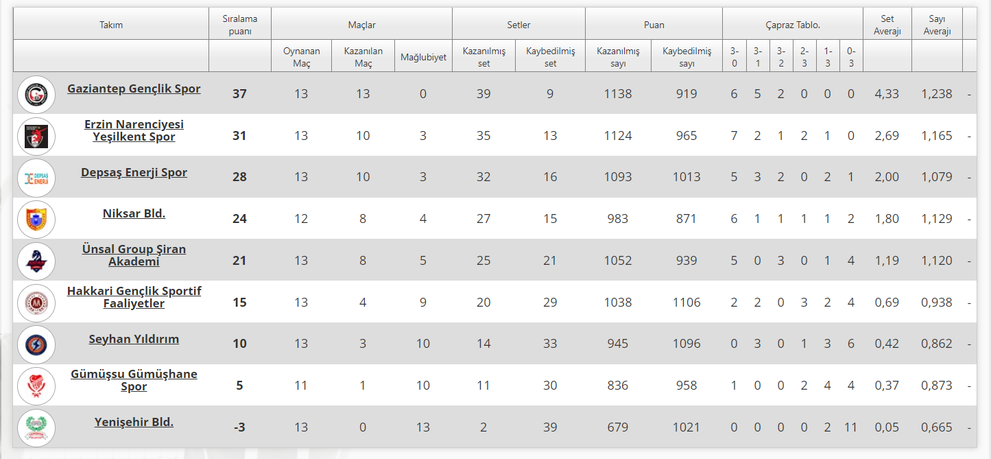Alpaslan Endüstri Erkekler 1. Ligi’nde 17.Hafta 12 Şubat Pazartesi günü Gümüşhane'de oynanan Gümüşsu Gümüşhane Spor - Erzin Narenciyesi Yeşilkent Spor karşılaşması ile sone erdi. Haftanın kapanış mücadelesini kazanan taraf 3-0'lık skorla Erzin Narenciyesi Yeşilkent Spor oldu. Oynanan maçlardan sonra gruplarda puan durumu şu şekilde oluştu: