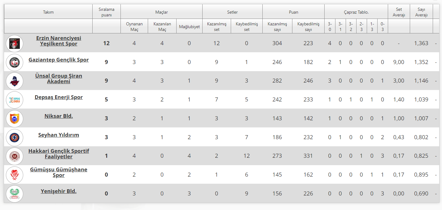 Erzin Narenciyesi Yeşilkent-Niksar Bld.: 3-0 (29-27, 25-19, 25-22)