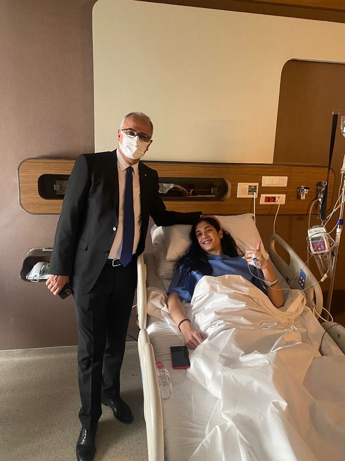 Ameliyat olan Yasemin'in ilk ziyaretçisi Akif Başkan oldu
