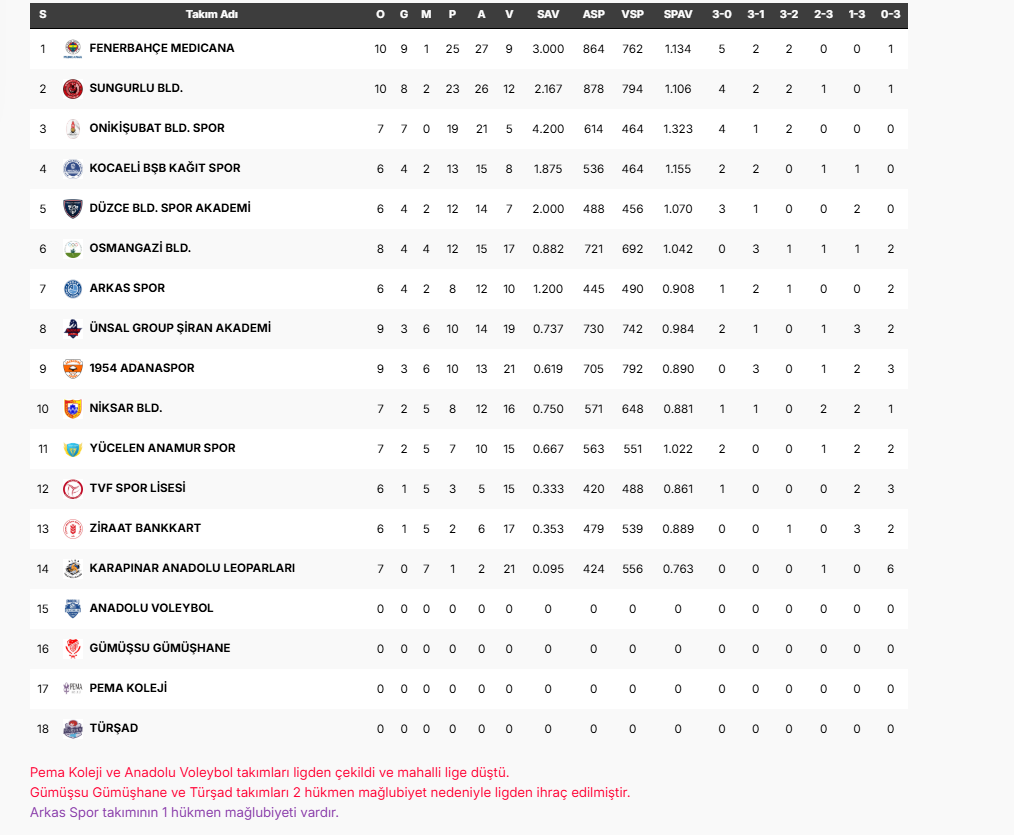 Oynanan maçların ardından ligde puan tablosu şu şekilde oluştu: