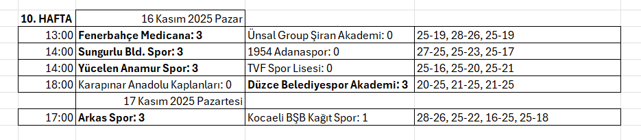 Oynanan maçlarda alınan sonuçlar şöyle: