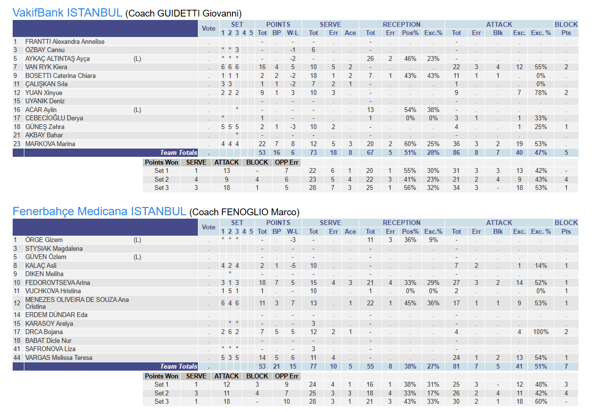 VakıfBank: 0 – Fenerbahçe Medicana: 3