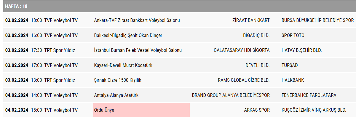 AXA Sigorta Efeler Ligi’nde 18. ve 19. Haftanın Programı Açıklandı