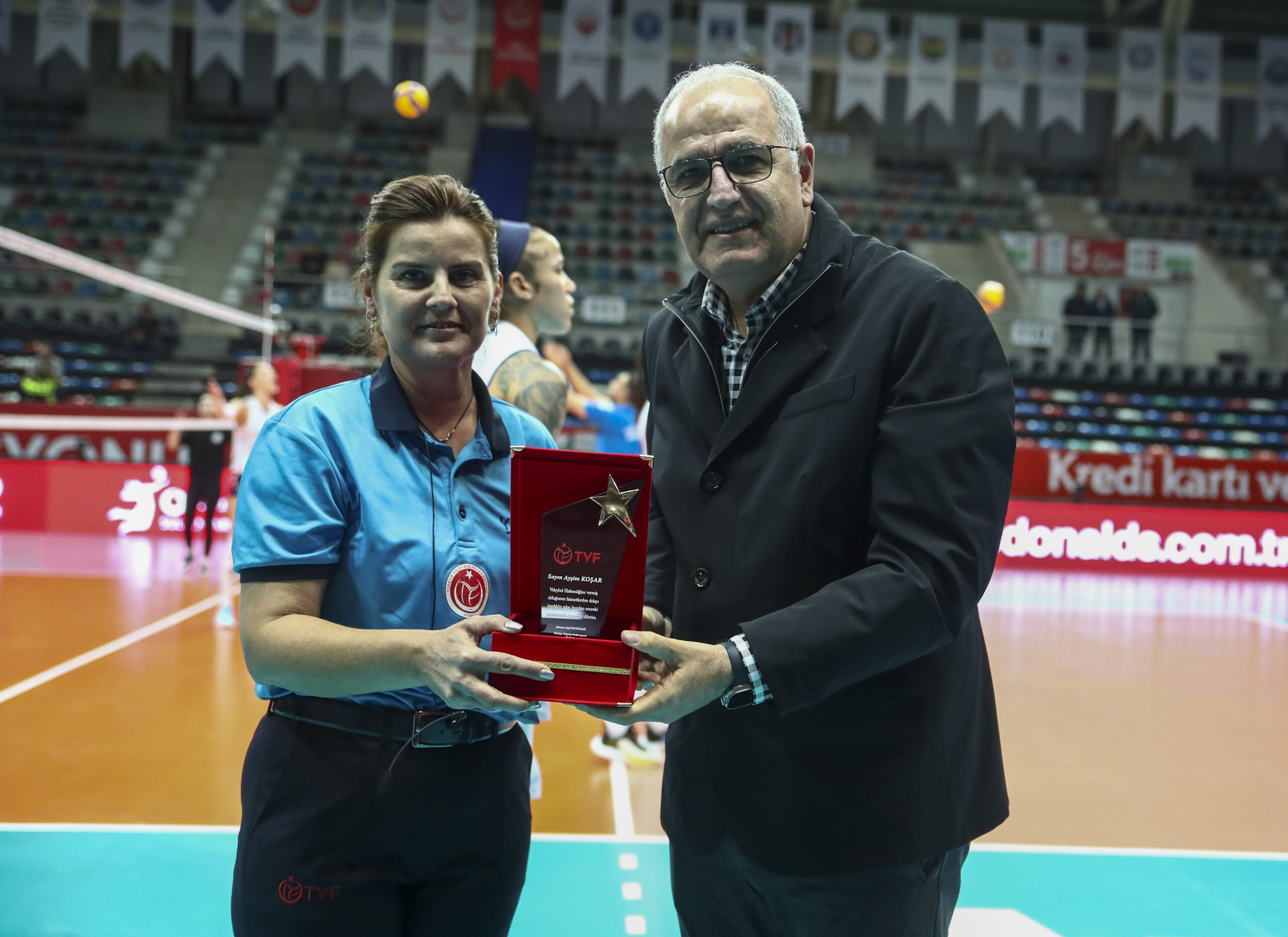 2 Şubat Pazar günü oynanan Keçiören Belediye Sigorta Shop - Nilüfer Belediyesi mücadele öncesinde müsabakanın yardımcı hakemi Ayşim Koşar'ın hakemliğinin sona ermesi nedeniyle TVF Başkanı Mehmet Akif Üstündağ, MHGK Başkanı Nihat Ermihan, Eski MHGK Başkanı Aziz Yener, Voleybol Hakemleri ve Gözlemcileri Konfederasyonu Başkanı Çetin Ok, Ankara Voleybol Hakemleri ve Derneği Asbaşkanı Sebile Mert teşekkür plaketi takdim etti. Ayşim Koşar'a voleybol hakemliğine yaptığı katkılar için teşekkür eder; bundan sonraki yaşantısında başarılar dileriz. Voleybol Aktüel