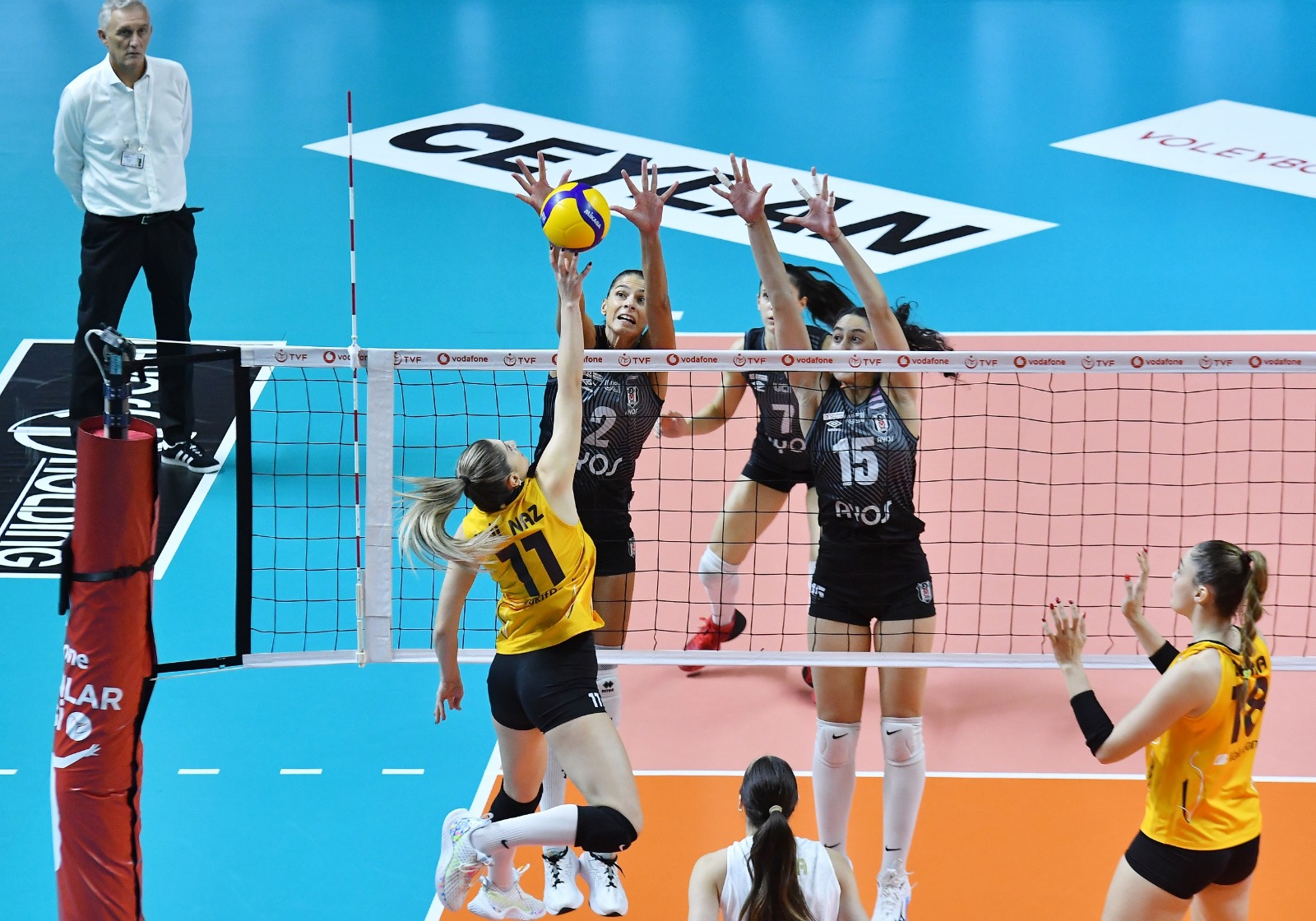 Türkiye’nin uluslararası alanda en çok kupa kazanan takımı VakıfBank, Vodafone Sultanlar Ligi’nde 2023-2024 sezonunda ikinci maçını da kazandı. İlk hafta maçında Karayolları’nı yenen sarı-siyahlılar, Beşiktaş Ayos deplasmanından 3-2’lik galibiyetle döndü. TVF Burhan Felek Voleybol Salonu’ndaki mücadelenin ilk setinde rahat bir oyun ortaya koyan VakıfBank, 25-17’lik skorla öne geçti. İkinci sete ev sahibi ekip hızlı bir giriş yapsa da rakibini yakalayan sarı-siyahlılar, setin ikinci bölümünde kontrolü ele geçirdi ve 25-20’lik set skoru ile maçı 2-0’a getirdi. 3. set 25-20, 4. set 26-24 Beşiktaş Ayos’un olurken; VakıfBank final setini 15-9 alarak maçı kazandı. VakıfBank’ta Aleksia Karutasu 25 sayıyla takımının en skorer ismi olurken; Gabi 19, Zehra Güneş 14, Chiaka Ogbogu ise 12 sayıyla çift hanelere ulaştı. VakıfBank sıradaki maçında 21 Ekim Cumartesi günü 14.00’te Galatasaray Daikin’i ağırlayacak.