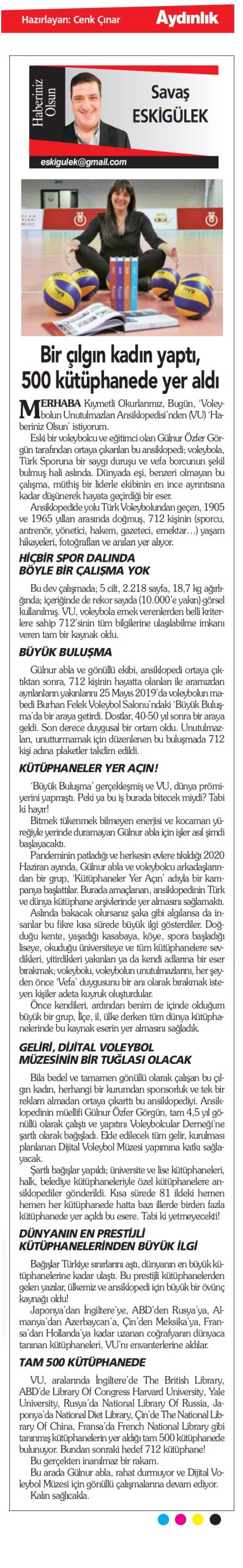 Pandeminin patladığı ve herkesin evlere tıkıldığı 2020 Haziran ayında, Gülnur abla ve voleybolcu arkadaşlarından bir grup, ‘Kütüphaneler Yer Açın’ adıyla bir kampanya başlattılar. Burada amaçlanan, ansiklopedinin Türk ve dünya kütüphane arşivlerinde yer almasını sağlamaktı.