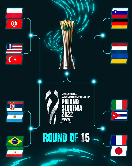 Slovenya ve Polonya'nın ortaklaşa düzenlediği 2022 FIVB Dünya Şampiyonası son 16 turu eşleşmeleri ve maçların programı belli oldu.
