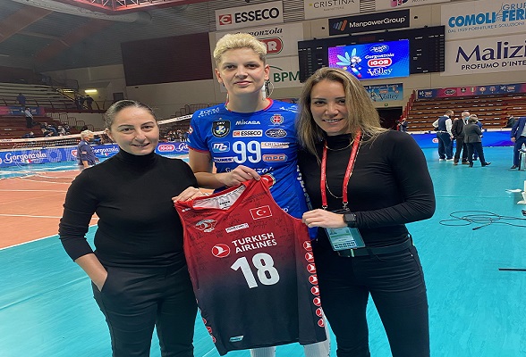 Novara forması giyen Ebrar Karakurt’a CEV Şampiyonlar Liginde karşılaştığı eski takımından Teşekkür Plaketi CEV Şampiyonlar Liginde Igor Gorgonzola Novara- Türk Hava Yolları maçının ardından eski takımına karşı forma giyen milli voleybolcu Ebrar Karakurt’a Türk Hava Yolları Voleybol Şube Sorumlusu Nihan Güneyligil aracılıcılığı ile THY Spor Kulübü’ne verdiği hizmet için bir teşekkür plaketi takdim etti ve tüm takımın imzaladığı 18 numaralı formasını hediye etti.