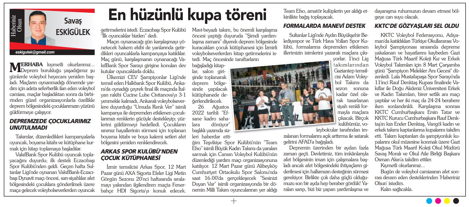 Bugün de voleybol camiasının afet sonrası devam eden desteklerinden ‘Haberiniz Olsun’ istedim.