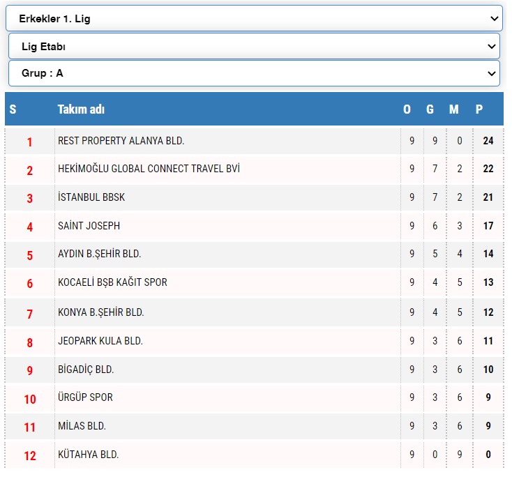 TVF Erkekler Voleybol 1. Ligi’nde 9. hafta, 4 Aralık Cumartesi günü A ve B gruplarında oynanan karşılaşmaların ardından sona erdi. Oynanan maçlarda alınan sonuçlar ile gruplardaki puan durumları şöyle: