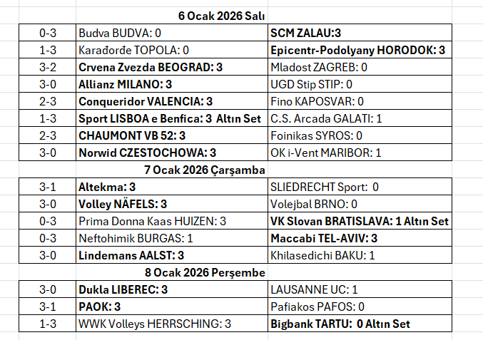Avrupa erkek voleybolunun heyecan dolu organizasyonu 2026 Erkekler CEV Challenge Cup’ta (Challenge Kupası) 16’lı final etabı rövanş maçları sona erdi..