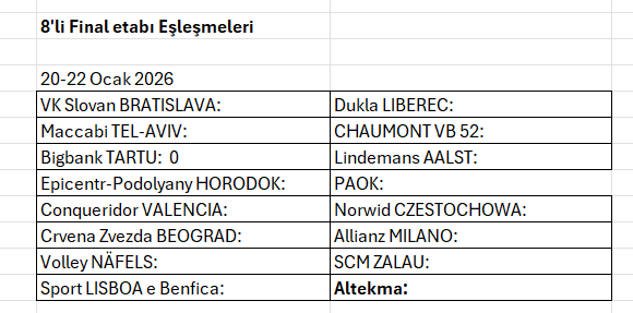 Erkekler CEV Challenge Cup'ta 8'li Final Eşleşmeleri Belli OlduAvrupa erkek voleybolunun heyecan dolu organizasyonu 2026 Erkekler CEV Challenge Cup’ta 16’lı final etabı rövanş maçları tamamlandı.