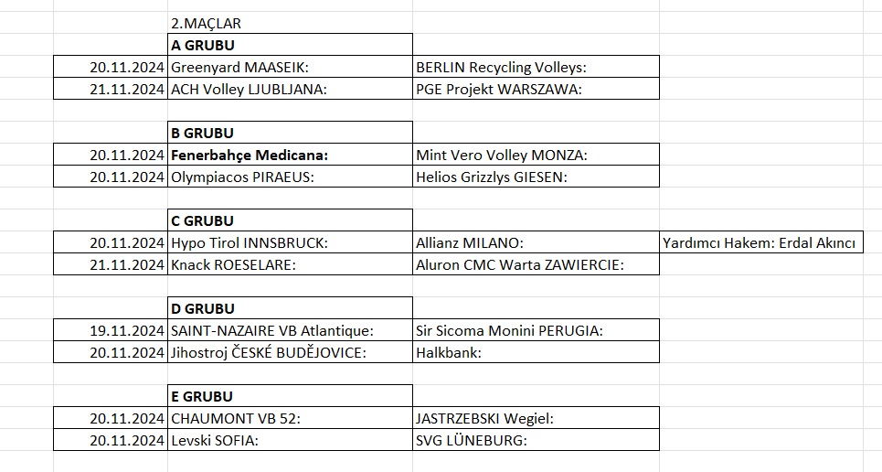 Bu kupada ülkemizi B Grubunda temsil eden Fenerbahçe Medicana, ikinci maçında İtalya'nın Mint Vero Volley Monza takımını konuk edecek. Halkbank ise ikinci maçını Çekya deplasmanında Jihostroj ČESKÉ BUDĚJOVICE ile oynayacak.