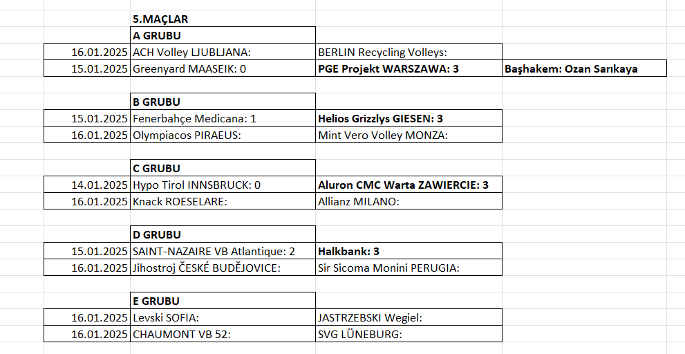 2025 CEV Erkeler Voleybol Şampiyonlar Ligi gruplarında beşinci maçlar devam ediyor.