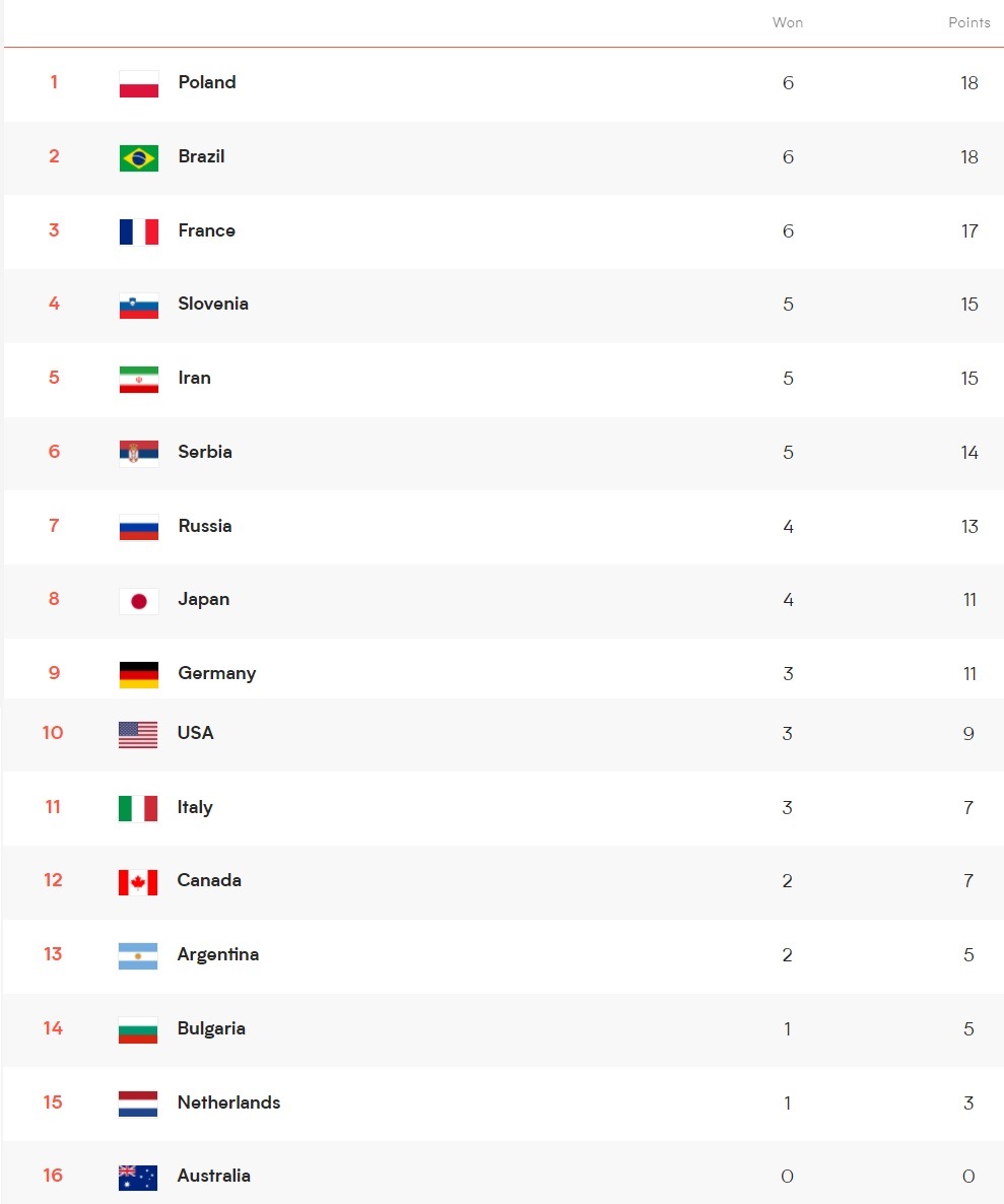 Erkekler VNL’de üçüncü haftanın ilk gününde oynanan maçlar sonunda alınan sonuçlar, puan durumu ve 10 Haziran Perşembe günü oynanacak maçların programı şöyle: