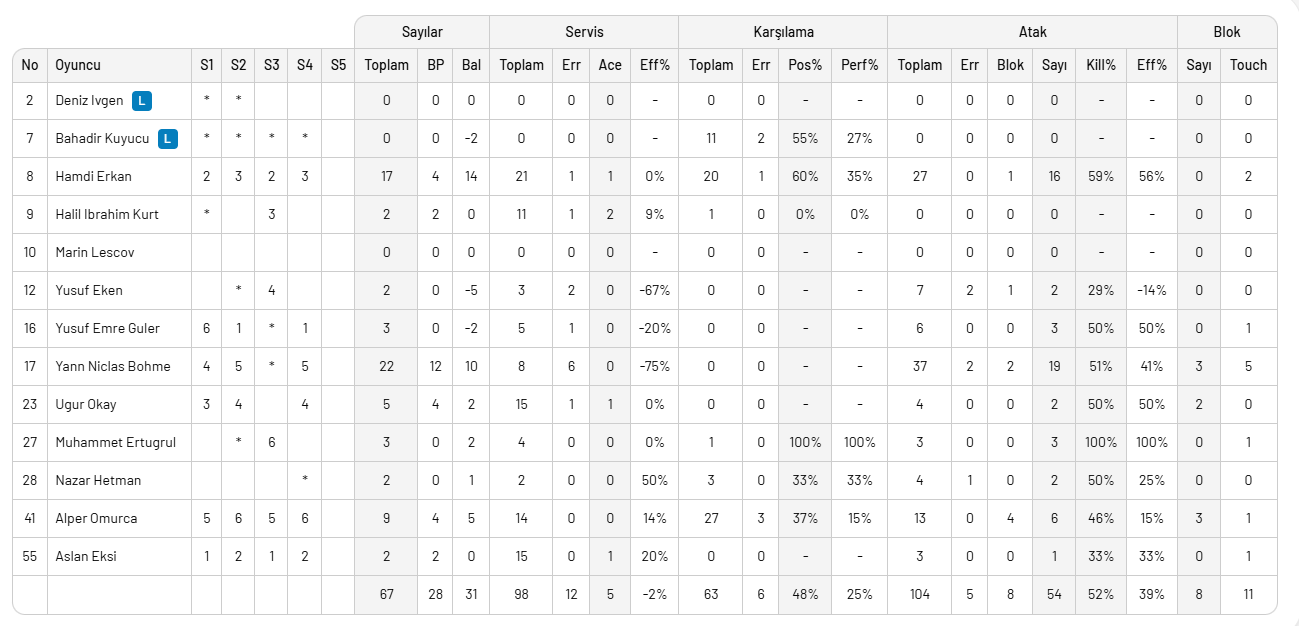 Karşılaşmada 8 blok, 54 hücum, 5 servis sayısı ile rakibinin direkt hatası ile bulduğu 33 sayı ile 3 puanı kazanan Gaziantep Gençlik Spor'da Hamdi Erkan ve Yann Niclas Böhme'nin hücumdaki etkin oyunu dikkat çekti. Böhme 22, Hamdi 17, sayı ile çift haneli sayılara ulaştılar. Şırnak ekibinde ise Herhandez'in 18, İbrahim Emet'in 17 sayısı sezonun ilk puanını almaya yetmedi.