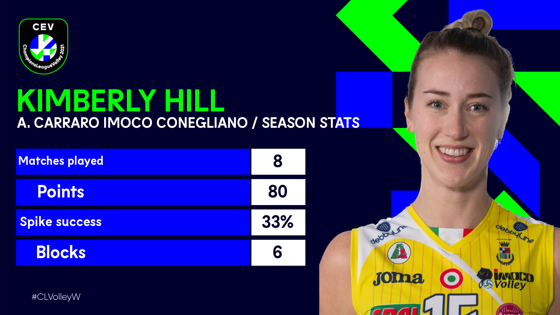 A. Carraro Imoco Conegliano takımının bu sezon Şampiyonlar Ligi'ndeki en başarılı 2. ismi olan Kimberly Hill, CEV'e verdiği röportajda VakıfBank maçını sabırsızlıkla çektiklerini belirtti.