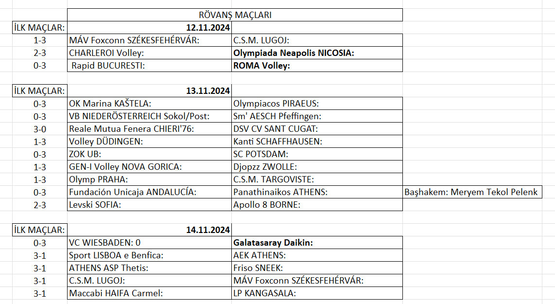 Bu turda rövanş maçları 13-14 Kasım tarihlerinde oynanacak. İkinci maçların programı ise şöyle: