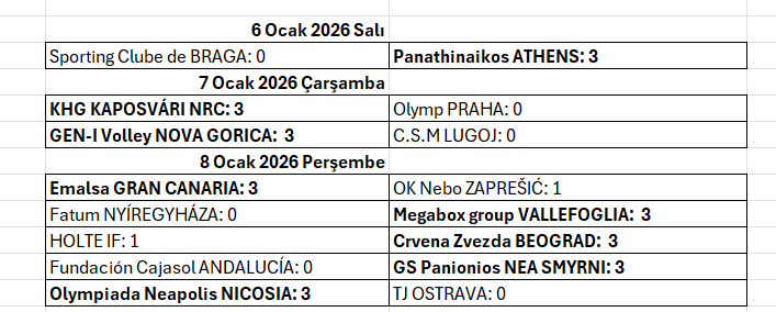 Bu turda ikinci maçlar 13-15 Ocak tarihlerinde oynanacak.