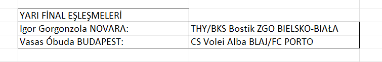Yarı Final eşleşmeleri ise şu şekilde olacak: