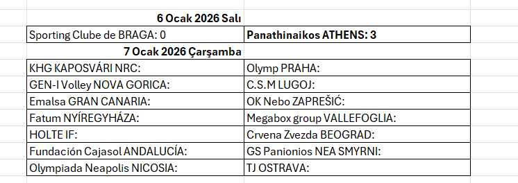 Etabın perdesi 6 Ocak 2026 Salı günü Portekiz’de açıldı. Portekiz temsilcisi Sporting Clube de Braga, Yunan ekibi Panathinaikos Athens’a 3-0 yenildi.