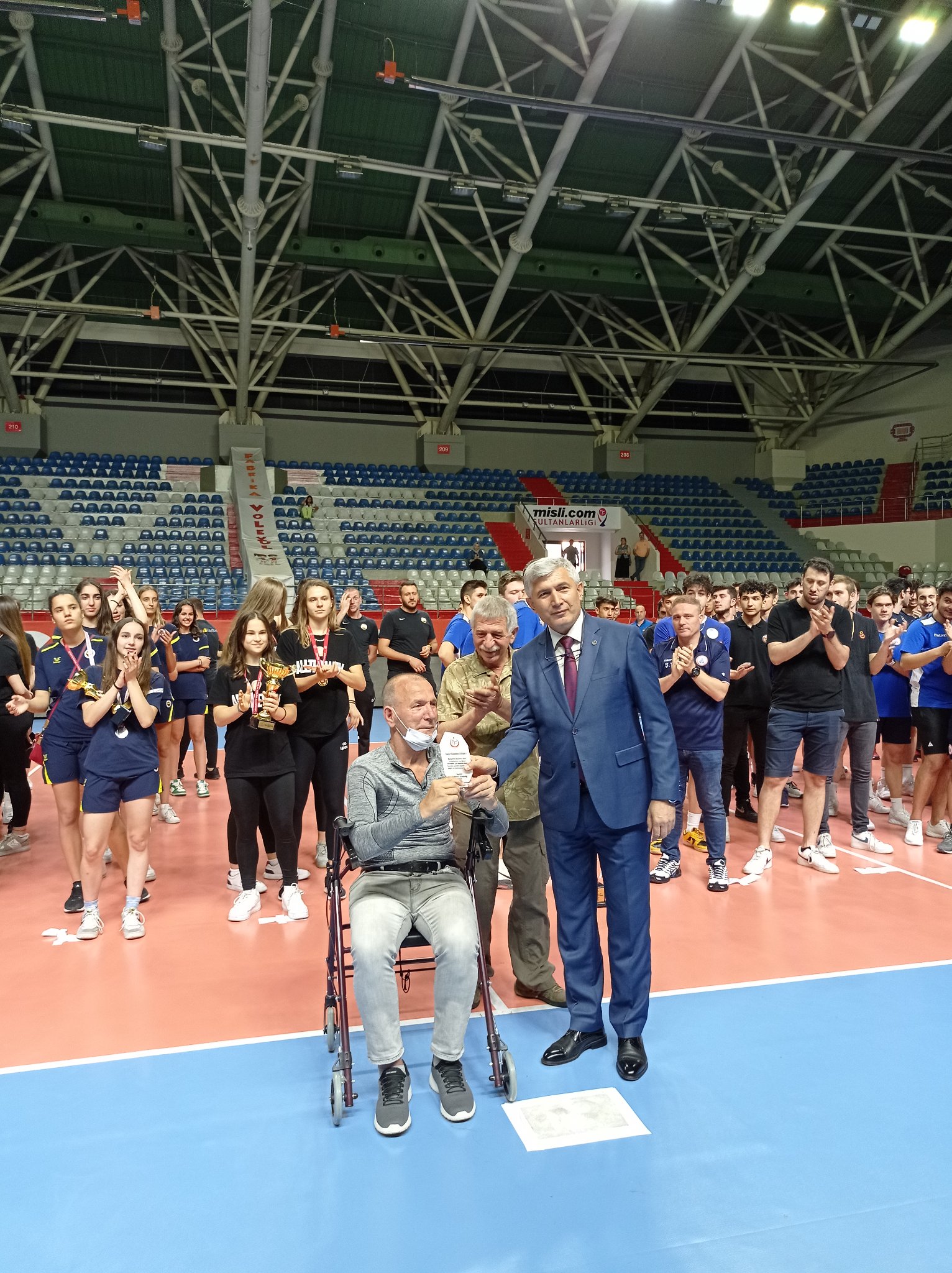 Oldukça duygusal anları ortaya çıkaran olay; TVF İstanbul Voleybol İl Temsilciliği ekibinin belirlediği 25 kişinin sahaya davet edilmesi ve plaketle ödüllendirilmesiyle yaşandı. Yakın geçmişten günümüze kadar İstanbul’da voleybolun gelişimine hizmet eden ve katkı yapan kişilerin, henüz hayattayken aldıkları bu ödül, gerçekten çok büyük sürpriz oldu. Gencecik sporcular önünde verilen bu ödüllerin onlara da bir hayat öğretisi olduğunu söyleyebilirim.