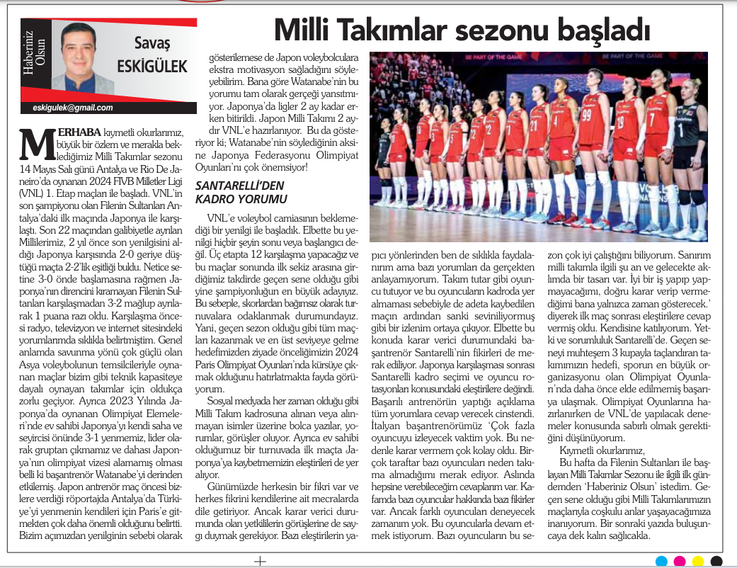 Büyük bir özlem ve merakla beklediğimiz Milli Takımlar sezonu 14 Mayıs Salı günü Antalya ve Rio De Janeiro’da oynanan 2024 FIVB Milletler Ligi (VNL) 1. Etap maçları ile başladı. VNL’in son şampiyonu olan Filenin Sultanları Antalya’daki ilk maçında Japonya ile karşılaştı. Son 22 maçından galibiyetle ayrılan Millilerimiz, 2 yıl önce son yenilgisini aldığı Japonya karşısında 2-0 geriye düştüğü maçta 2-2’lik eşitliği buldu. Netice setine 3-0 önde başlamasına rağmen Japonya’nın direncini kıramayan Filenin Sultanları karşılaşmadan 3-2 mağlup ayrılarak 1 puana razı oldu. Karşılaşma öncesi radyo, televizyon ve internet sitesindeki yorumlarımda sıklıkla belirtmiştim. Genel anlamda savunma yönü çok güçlü olan Asya voleybolunun temsilcileriyle oynanan maçlar bizim gibi teknik kapasiteye dayalı oynayan takımlar için oldukça zorlu geçiyor. Ayrıca 2023 Yılında Japonya’da oynanan Olimpiyat Elemeleri’nde ev sahibi Japonya’yı kendi saha ve seyircisi önünde 3-1 yenmemiz, lider olarak gruptan çıkmamız ve dahası Japonya’nın olimpiyat vizesi alamamış olması belli ki başantrenör Watanabe’yi derinden etkilemiş. Japon antrenör maç öncesi bizlere verdiği röportajda Antalya’da Türkiye’yi yenmenin kendileri için Paris’e gitmekten çok daha önemli olduğunu belirtti. Bizim açımızdan yenilginin sebebi olarak gösterilemese de Japon voleybolculara ekstra motivasyon sağladığını söyleyebilirim. Bana göre Watanabe’nin bu yorumu tam olarak gerçeği yansıtmıyor. Japonya’da ligler 2 ay kadar erken bitirildi. Japon Milli Takımı 2 aydır VNL’e hazırlanıyor. Bu da gösteriyor ki; Watanabe’nin söylediğinin aksine Japonya Federasyonu Olimpiyat Oyunları’nı çok önemsiyor!