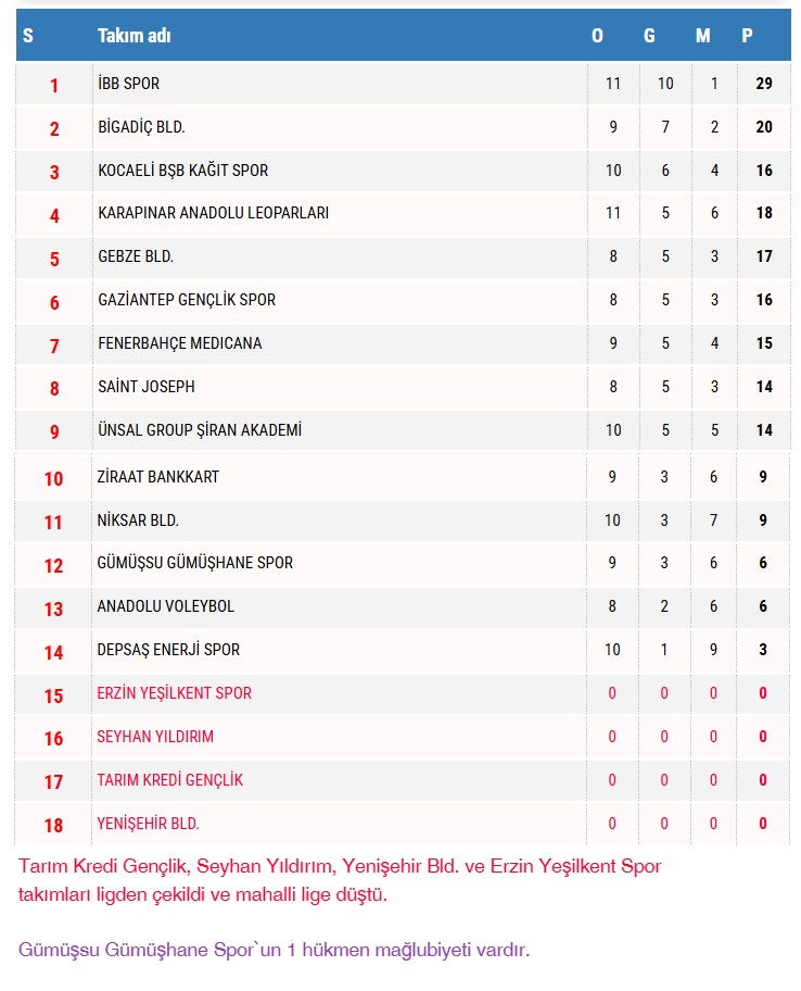 Oynanan maçlar sonunda ligde puan durumu şöyle oluştu: