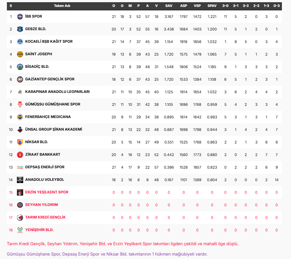 Pizza Hut Erkekler 1.Ligi'nde 26.hafta sona erdi. Sonuçlar şu şekilde: Gebze Bld.-Gaziantep Gençlik Spor: 3-1 (25-16, 23-25, 25-21, 25-20) Depsaş Enerji-Kocaeli BŞB Kağıt Spor: 1-3 (17-25, 18-25, 25-17, 15-25) Gümüşsu Gümüşhanespor-Anadolu Voleybol: 3-0 (25-15, 25-22, 25-18) Ünsal Group Şiran Akademi-İBB Spor: 2-3 (16-25, 25-21, 15-25, 25-23, 14-16) Oynanan maçların ardından ligde puan durumu şu şekilde oluştu: