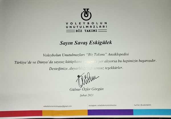 İçinden de arkası bile özel düşünülmüş bir Teşekkür Beratı ile Voleybolun Unutulmazları Ansiklopedisini bağışladığım iki kütüphanenin resmi teslim belgeleri çıktı.
