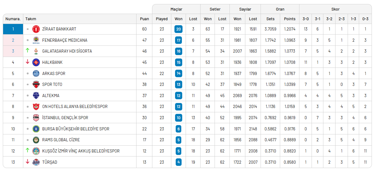 Arkas Spor ise ligde son haftaya girilirken erteleme maçını kazandığı takdirde 15. galibiyetini elde ederek 46 yada 47 puana sahip olacak ve Halkbank'ın önünde 4. sıraya yükselecek. Arkas Spor ligdeki son maçında 15 Mart Cumartesi günü Fenerbahçe Medicana'yı konuk edecek. Arkas'ın final etabına kalması için rakibini mutlaka 3-0 yada 3-1 yenmesi gerekecek veya Bursa deplasmanında Halkbank'ın puan kaybetmesini bekleyecek.