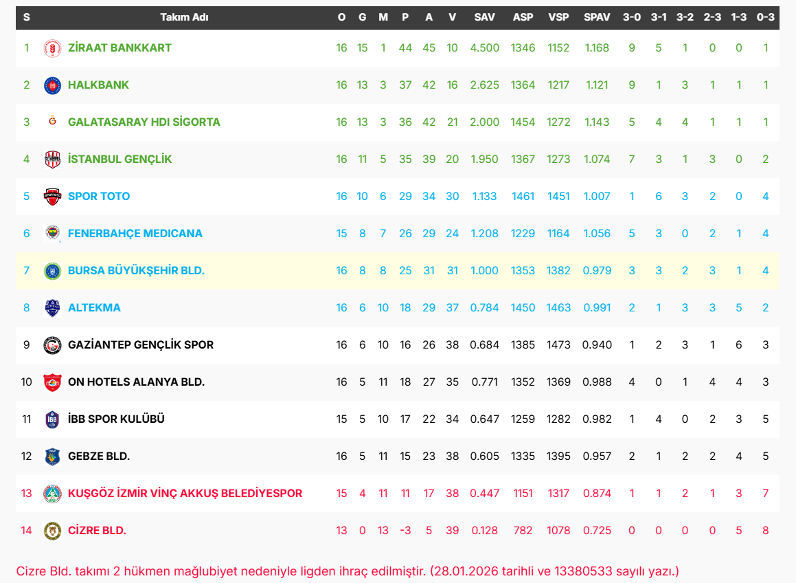 15.00 Bursa Büyükşehir Bld. - Halkbank (Cengiz Göllü Voleybol Salonu / TVF Voleybol TV)