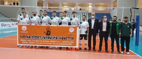 Türkiye Voleybol Federasyonu AXA Sigorta Efeler Ligi'nde mücadele eden Solhan Spor, bu hafta kulüp tarihinin en önemli diğer bir maçına çıktı. Solhan Spor oyuncuları, karşılaşma öncesinde Bingöl Aile, Çalışma ve Sosyal Hizmetler İl Müdürlüğü İle Bingöl Şiddet Önleme ve İzleme Merkezi Müdürlüğü tarafından hazırlanan “Kadına Şiddet İnsanlığa İhanettir” pankartıyla çıktılar.