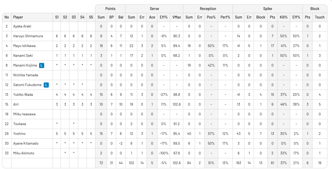 Milli Takımımız 3 servis, 3 hücum hatası ile rakibine sayı kaptırırken ikinci setteki hücum verimliliği bu sette sağlamadık. Bu sette %38 ile hücum eden Milliler, Yoshino, Wada ve Airi'yi durdurmakta zorlandı.