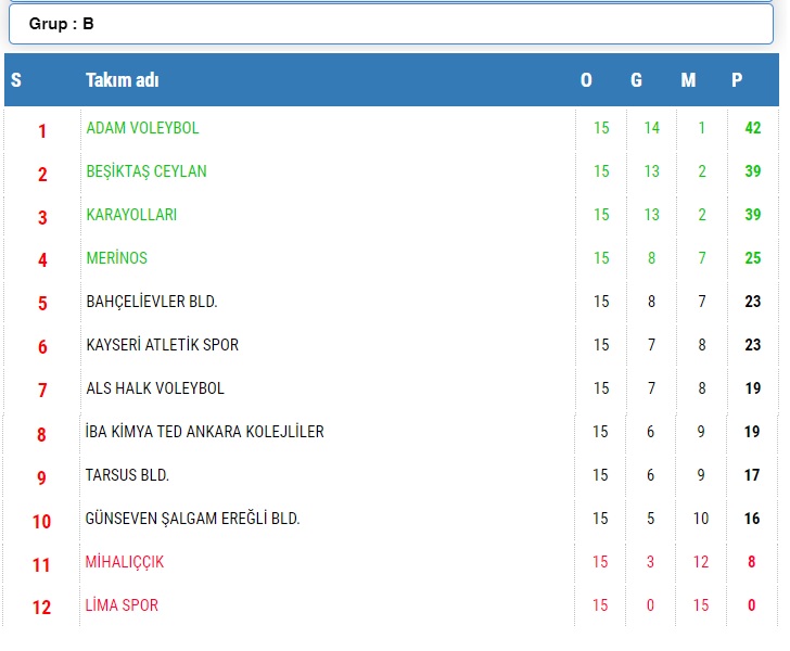 MAÇ SONUCU SETLER Karayolları – Adam Voleybol: 3-1 12-25, 25-22, 25-23, 25-21