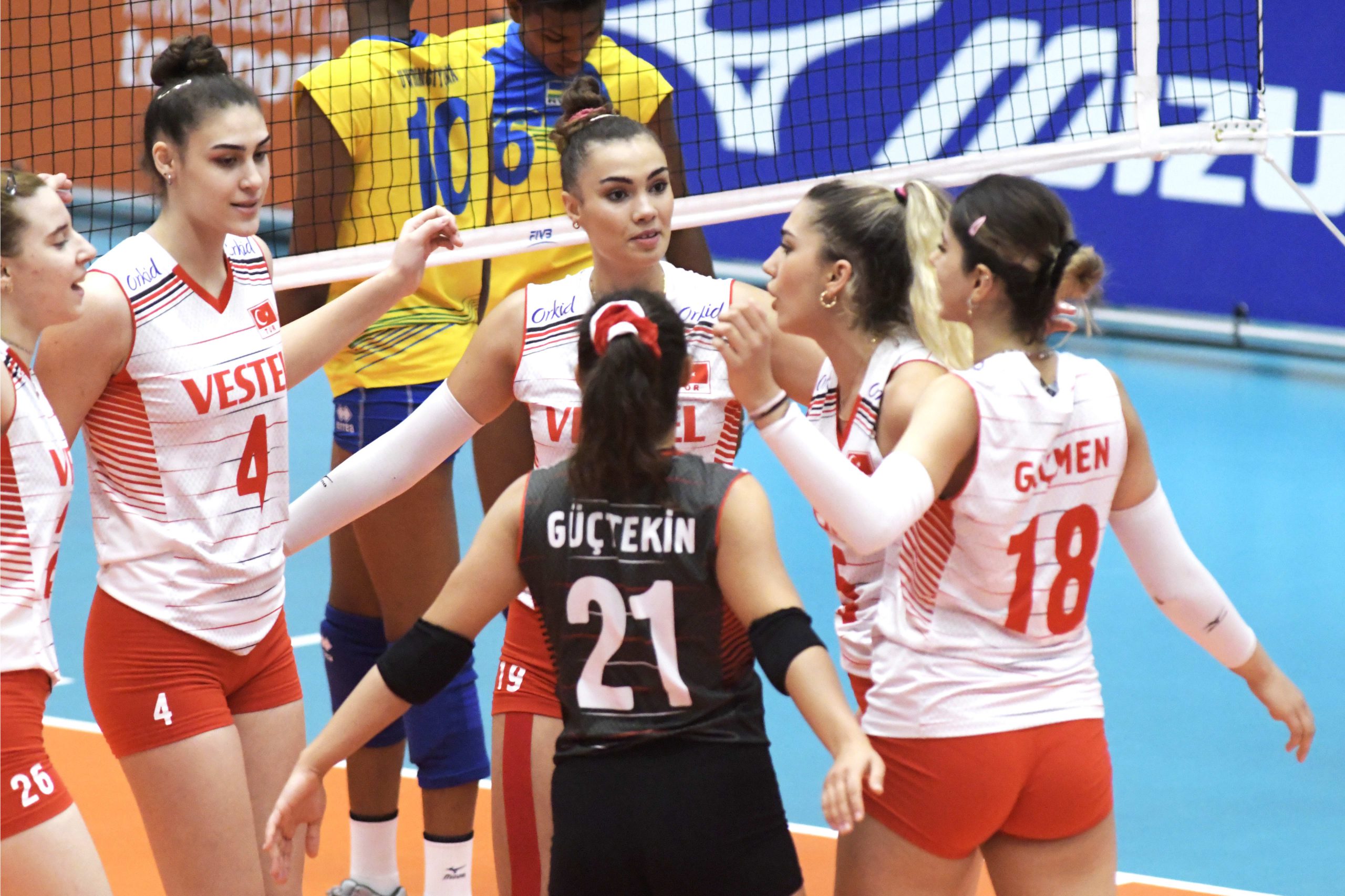 Hollanda ve Belçika’nın ortaklaşa düzenlediği FIVB U20 Kızlar Dünya Voleybol Şampiyonası’nda mücadele eden 20 Yaş Altı Kız Milli Takımımız, 2. etap ilk karşılaşmasında Ruanda’yı 3-0 (25-9, 25-15, 25-16) mağlup etti. Millilerimizde Ege Melisa 12, Hanife Nur 11, Beren 10 sayıyla öne çıkan isimler olurken; Karmen ve Aleyna 8, Çağla 5 sayı kaydetti. FIVB U20 Kızlar Dünya Şampiyonası 2. etap karşılaşmalarında G Grubu’nda yer alan U20 Kız Milli Takımımız, ikinci maçında 14 Temmuz Çarşamba günü TSİ 19.30’da Tayland ile karşılaşacak. Müsabakayı, Volleyball World YouTube kanalından canlı olarak yayınlanacak. Karşılaşmayı izlemek için tıklayınız.