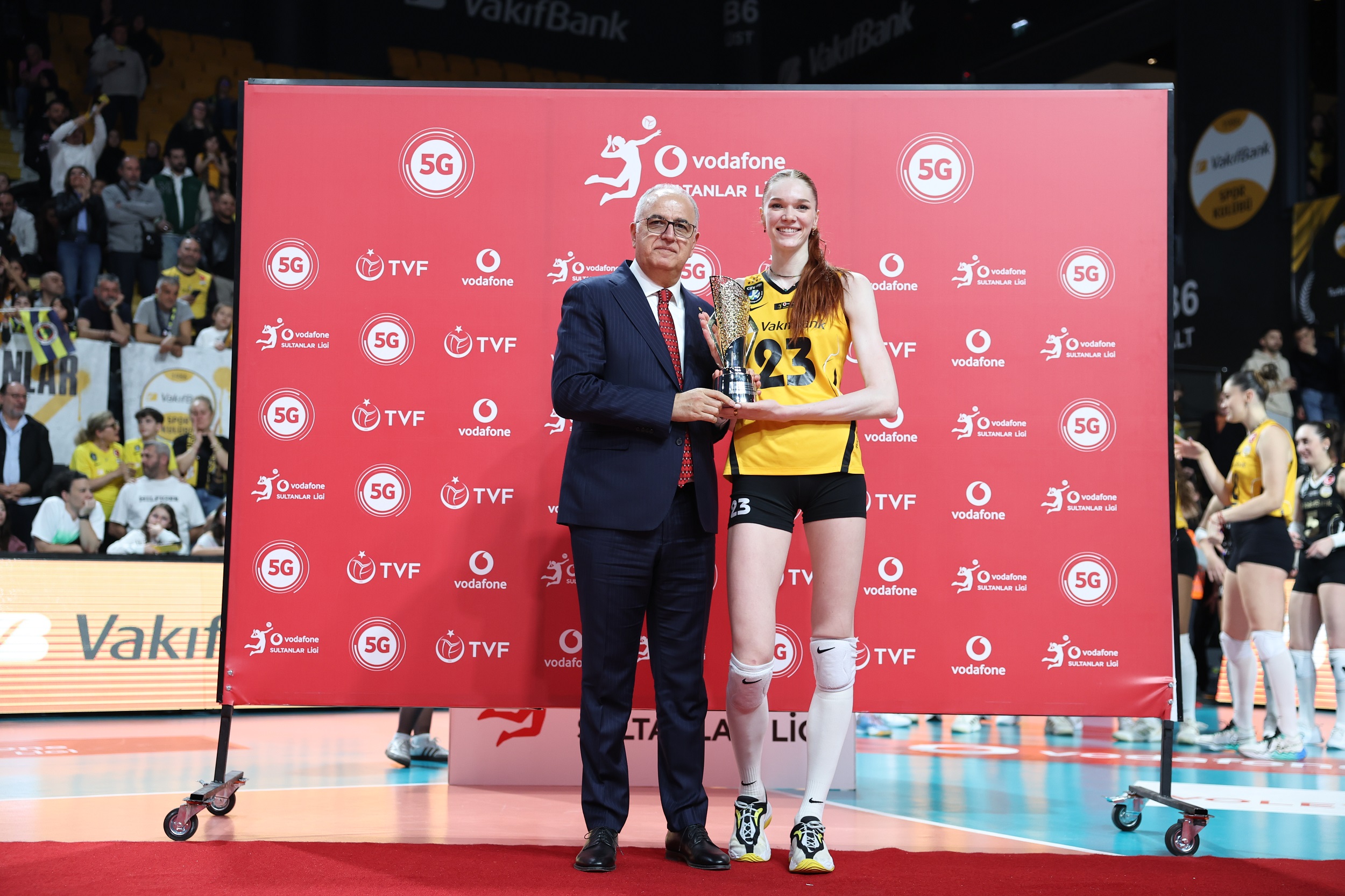 Final serisi boyunca sergilediği performansla dikkatleri üzerine çeken VakıfBank’ın yıldızı Marina Markova, final karşılaşmasının en değerli oyuncusu (MVP) seçildi. Başarılı sporcuya ödülünü TVF Başkanı Mehmet Akif Üstündağ takdim etti.