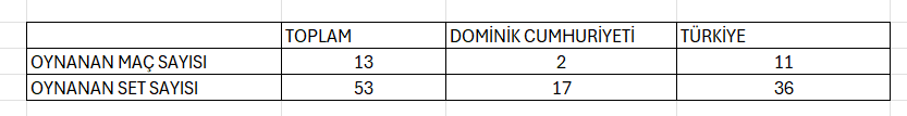 Türkiye: 2 - Dominik Cumhuriyeti: 3