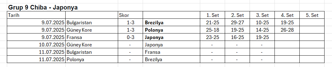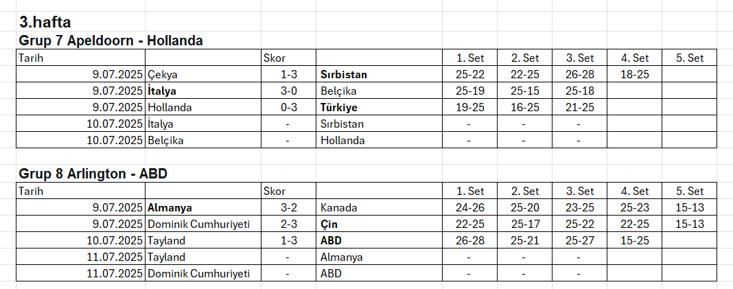Oynanan maçların ardından VNL'de puan durumu şu şekilde oluştu: