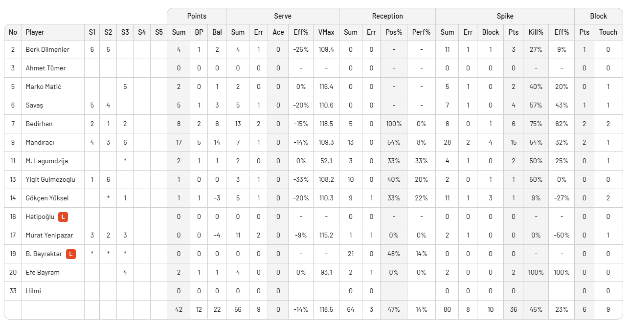 Servislerde hata yaparak başladığımız sette ilk sete göre daha iyi hücum ve daha iyi blok yaptık. Hızlı oynayıp orta hücumcularımızı kullandığımız anlarda 3 sayı da olsa farkı bulduk. Son bölüme de 20-19 önde girmemize rağmen bu kez setin sonunu iyi oynayamadık. Yanchuk'u durdurmakta zorlanan Millilerimizde Efe Mandıracı'nın 8 sayısına destek az geldi. Bedirhan 4, Vahit Emre 4, Berk 1 sayı katkısı yapınca seti çevirmek mümkün olmadı.