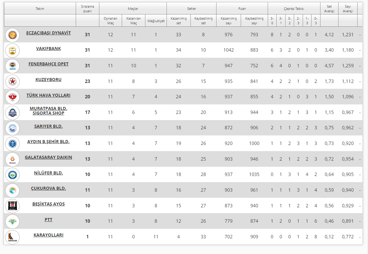 Vodafone Sultanlar Ligi’nde 11. hafta, 3 Aralık Pazar günü oynanan Beşiktaş Ayos-Galatasaray Daikin karşılaşmasıyla son buldu. Haftanın kapanış mücadelesini kazanan taraf 3-1’lik (16-25, 25-22, 25-19, 25-12) skorla konuk Galatasaray Daikin oldu.