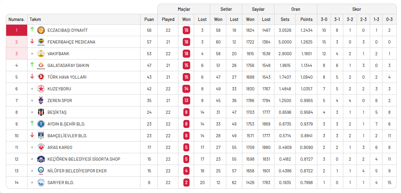 Eczacıbaşı Dynavit: 1-3 (25-22, 10-25, 14-25, 16-25) -