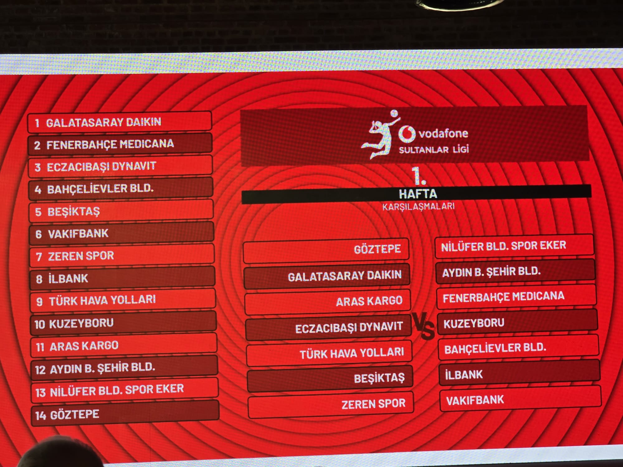 Vodafone Sultanlar Ligi’nde 2025/2026 sezonunun ilk hafta programı belli oldu. 20 Ağustos’ta İstanbul Fişekhane’de yapılan kura çekimiyle birlikte lig maratonu resmen başladı. Türkiye Voleybol Federasyonu'nun düzenlediği organizasyonda, 14 kulübün temsilcileri ve medya mensupları hazır bulundu. Sezonun açılış haftasında Galatasaray Daikin, sahasında Aydın Büyükşehir Belediyespor’u ağırlarken; Eczacıbaşı Dynavit ise Kuzeyboru karşısında sezonu açacak.